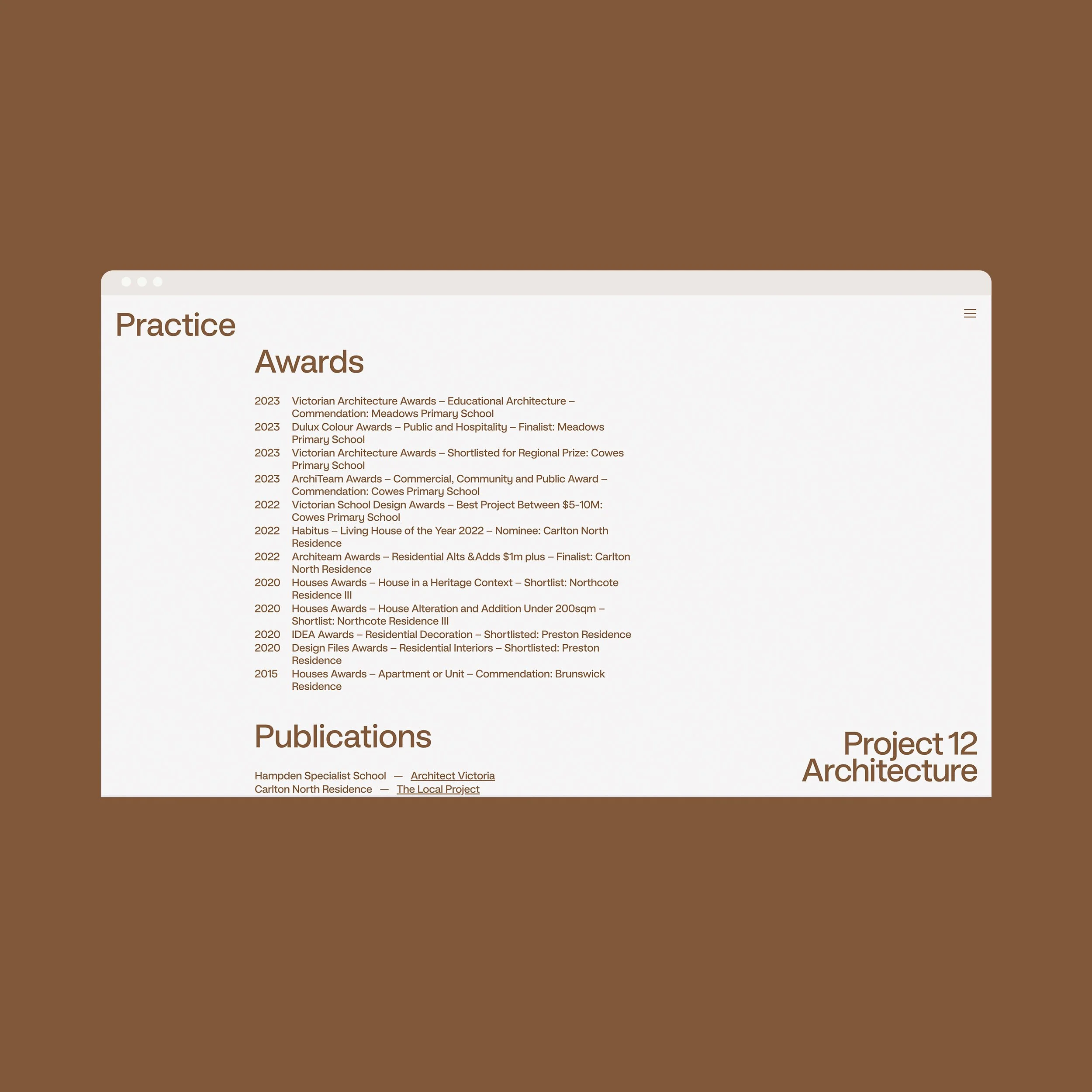 Showcasing the balance between client and practice with a new website for Project12 Architecture.